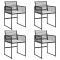 Chaises de jardin lot de 4 avec coussins noir résine tresséeDétendez-vous et profitez de l'extérieur dans ces confortables chaises de jardin ! Matériau durable : la résine tressée, également connue sous le nom de poly rotin, est un matériau synthétique solide et nécessitant peu d'entretien qui ressemble au rotin naturel. Il est léger, facile à nettoyer et couramment utilisé pour les meubles d'extérieur en raison de sa durabilité et de ses propriétés de résistance aux intempéries. Expérience d'assise confortable : ce mobilier d'extérieur, doté de coussins épais, offre une expérience d'assise confortable. Rangement compact : ces chaises sont dotées d'un dossier à rabat qui peut être rabattu pour un rangement compact. Housse amovible et lavable : ces coussins de siège sont dotés de housses amovibles pour un lavage et un entretien faciles. Cadre robuste et stable : le cadre en acier enduit de poudre assure la solidité et la stabilité du meuble de jardin pour une utilisation quotidienne à l'extérieur. Bon à savoir : Pour que vos meubles d'extérieur restent beaux, nous vous recommandons de les protéger avec une housse imperméable. Maximum 110 kg par siège. Soyez conscient du risque de feux ouverts et d'autres sources de forte chaleur à proximité du produit. ,