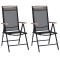 Chaises de jardin pliables lot de 2 aluminium et textilène noirCet ensemble de chaises a un design élégant et intemporel et sera un supplément fonctionnel et décoratif à votre jardin ou patio. Le cadre en aluminium enduit de poudre rend les chaises très robustes et durables. Les chaises de jardin sont dotées de sièges et de dossier en textilène doux au toucher et résistant aux intempéries. Elles sont réglables en 7 positions, ce qui vous permet de toujours trouver la position d'assise la plus confortable. Les accoudoirs et la barre supérieure ajoutent à l'élégance des chaises. Grâce à leur légèreté, les chaises peuvent être déplacées sans effort. Les chaises peuvent être pliées pour gagner de la place lorsqu'elles ne sont pas utilisées. La livraison comprend 2 chaises pliables. Maximum 110 kg par siège. ,