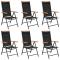 Chaises de jardin pliables lot de 6 Textilène NoirProfitez d'un temps de loisirs confortable avec vos amis ou votre famille dans votre espace extérieur sur cet ensemble de chaises de jardin pliables simplistes ! Les accoudoirs en contreplaqué ajoutent une élégance à l'ensemble de la chaise. Les chaises de jardin ont des dossiers qui s'inclinent dans 7 réglages, de sorte que vous puissiez toujours trouver la position la plus confortable. Les sièges sont confortables avec du textilène respirant. Grâce à la conception pliable, les chaises peuvent être pliées pour gagner de la place lorsqu'elles ne sont pas utilisées. Avec la structure légère, ces chaises inclinables sont faciles à déplacer ou à transporter au camping, à la plage, etc. Maximum 110 kg par siège.