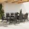 Chaises de jardin pliables lot de 8 en acier et textilèneCes chaises de jardin ont un design élégant et seront un excellent choix pour les repas en plein air dans le jardin ou sur la terrasse. Durable et longue durée de vie : le tissu textilène est apprécié pour sa durabilité, résistance à l'eau et à la décoloration, facilité d'entretien et protection contre les rayons UV et la moisissure, ce qui en fait un choix idéal pour le meuble d'extérieur et les structures d'ombrage. Robuste et stable : le cadre en acier impressionne par sa solidité, sa durabilité et sa résistance à la corrosion, ce qui en fait un choix idéal pour diverses applications, y compris la fabrication et la construction de meubles. Facile à transporter et à ranger : le siège de jardin est pliable et compact, ce qui permet de le ranger et de le transporter facilement. C'est un choix idéal pour les activités de plein air. Une expérience d'assise confortable : dotée d'accoudoirs et d'un dossier, la chaise d'extérieur vous offre un confort optimal. Bon à savoir : Pour que vos meubles d'extérieur restent beaux, nous vous recommandons de les protéger avec une housse imperméable. Maximum 110 kg par siège. ,