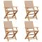 Chaises de jardin pliantes lot de 4 taupe tissu et bois massifDétendez-vous et profitez de l'extérieur dans ces confortables chaises de jardin pliantes ! Robuste et stable : le bois d'acacia massif est connu pour sa solidité et sa durabilité. Ses couleurs variées et ses grains uniques lui confèrent un aspect attrayant. Sa stabilité et sa résistance aux intempéries en font un matériau idéal pour la fabrication de meubles d'intérieur et d'extérieur.Facile à transporter et à ranger : la chaise peut être facilement pliée lorsqu'elle n'est pas utilisée, pour un rangement et un transport faciles.Conception pratique : la main courante en bois, pratique et plate, vous permet de poser vos mains dessus tout en profitant d'un moment en plein air.Diverses utilisations : la chaise pliable a un large éventail d'utilisations et peut facilement répondre à vos besoins dans n'importe quel environnement extérieur, comme les jardins, les patios, les balcons, etc. Bon à savoir :Pour que vos meubles d'extérieur restent beaux, nous vous recommandons de les protéger avec une housse imperméable. Maximum 110 kg par siège.
