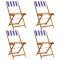 Chaises de jardin pliantes lot de 4 tissu et bois massifDétendez-vous et profitez de l'extérieur dans ces confortables chaises de jardin pliantes ! Robuste et stable : le bois d'acacia massif est connu pour sa solidité et sa durabilité. Ses couleurs variées et ses grains uniques lui confèrent un aspect attrayant. Sa stabilité et sa résistance aux intempéries en font un matériau idéal pour la fabrication de meubles d'intérieur et d'extérieur. Facile à transporter et à ranger : la chaise peut être facilement pliée lorsqu'elle n'est pas utilisée, pour un rangement et un transport faciles. Conception pratique : la main courante en bois, pratique et plate, vous permet de poser vos mains dessus tout en profitant d'un moment en plein air. Diverses utilisations : la chaise pliable a un large éventail d'utilisations et peut facilement répondre à vos besoins dans n'importe quel environnement extérieur, comme les jardins, les patios, les balcons, etc. Bon à savoir : Pour que vos meubles d'extérieur restent beaux, nous vous recommandons de les protéger avec une housse imperméable. Maximum 110 kg par siège. ,