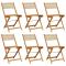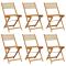Chaises de jardin pliantes lot de 6 beige bois d'acacia massifDétendez-vous et profitez de l'extérieur dans ces confortables chaises de jardin pliantes ! Robuste et stable : le bois d'acacia massif est connu pour sa solidité et sa durabilité. Ses couleurs variées et ses grains uniques lui confèrent un aspect attrayant. Sa stabilité et sa résistance aux intempéries en font un matériau idéal pour la fabrication de meubles d'intérieur et d'extérieur. Facile à transporter et à ranger : la chaise peut être facilement pliée lorsqu'elle n'est pas utilisée, pour un rangement et un transport faciles. Conception pratique : la main courante en bois, pratique et plate, vous permet de poser vos mains dessus tout en profitant d'un moment en plein air. Diverses utilisations : la chaise pliable a un large éventail d'utilisations et peut facilement répondre à vos besoins dans n'importe quel environnement extérieur, comme les jardins, les patios, les balcons, etc. Bon à savoir : Pour que vos meubles d'extérieur restent beaux, nous vous recommandons de les protéger avec une housse imperméable. Maximum 110 kg par siège.
