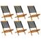 Chaises de jardin pliantes lot de 6 noir bois d'acacia massifDétendez-vous et profitez de l'extérieur dans ces confortables chaises de jardin pliantes ! Robuste et stable : le bois d'acacia massif est connu pour sa solidité et sa durabilité. Ses couleurs variées et ses grains uniques lui confèrent un aspect attrayant. Sa stabilité et sa résistance aux intempéries en font un matériau idéal pour la fabrication de meubles d'intérieur et d'extérieur. Facile à transporter et à ranger : la chaise peut être facilement pliée lorsqu'elle n'est pas utilisée, pour un rangement et un transport faciles. Conception pratique : la main courante en bois, pratique et plate, vous permet de poser vos mains dessus tout en profitant d'un moment en plein air. Diverses utilisations : la chaise pliable a un large éventail d'utilisations et peut facilement répondre à vos besoins dans n'importe quel environnement extérieur, comme les jardins, les patios, les balcons, etc. Bon à savoir : Pour que vos meubles d'extérieur restent beaux, nous vous recommandons de les protéger avec une housse imperméable.
