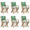 Chaises de jardin pliantes lot de 6 vert tissu et bois massifDétendez-vous et profitez de l'extérieur dans ces confortables chaises de jardin pliantes ! Robuste et stable : le bois d'acacia massif est connu pour sa solidité et sa durabilité. Ses couleurs variées et ses grains uniques lui confèrent un aspect attrayant. Sa stabilité et sa résistance aux intempéries en font un matériau idéal pour la fabrication de meubles d'intérieur et d'extérieur. Facile à transporter et à ranger : la chaise peut être facilement pliée lorsqu'elle n'est pas utilisée, pour un rangement et un transport faciles. Conception pratique : la main courante en bois, pratique et plate, vous permet de poser vos mains dessus tout en profitant d'un moment en plein air. Diverses utilisations : la chaise pliable a un large éventail d'utilisations et peut facilement répondre à vos besoins dans n'importe quel environnement extérieur, comme les jardins, les patios, les balcons, etc. Bon à savoir : Pour que vos meubles d'extérieur restent beaux, nous vous recommandons de les protéger avec une housse imperméable. Maximum 110 kg par siège. ,