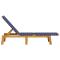 Chaises longues bleu foncé bois d'acacia solide et tissuCette chaise longue classique est idéale pour prendre un bain de soleil et vous détendre près de la piscine, sur la terrasse ou dans le jardin. Bois d'acacia massif : le bois d'acacia massif est un matériau naturel magnifique. Le bois d'acacia est un bois dur tropical, dense, robuste et durable. Par conséquent, le cadre de la chaise longue en bois d'acacia à finition à l'huile est stable et facile à entretenir. Matériau durable : la fibre d'oléfine, également connue sous le nom de fibre de polypropylène (PP), est confortable, solide, durable et très résistante à la décoloration par la lumière du soleil. Dossier réglable : la chaise longue confortable dispose d'un dossier inclinable à 4 positions pour une relaxation optimale. Conception de sangles : l'assise et le dossier de la chaise longue de jardin sont conçus avec des sangles pour plus de confort, d'élégance et de respirabilité. Bon à savoir : Pour que vos meubles d'extérieur restent beaux, nous vous recommandons de les protéger avec une housse imperméable. Maximum 110 kg par siège. ,