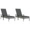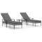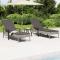 Chaises longues lot de 2 avec table et coussins gris poly rotinCes chaises longues en résine tressée avec une table sont un choix parfait pour vous permettre de vous détendre et de profiter de la journée dans votre espace d'extérieur. Matériau durable : la résine tressée, également connue sous le nom de rotin poly, résiste aux intempéries et est facile à nettoyer. Elle reste belle à l'extérieur pendant une longue période. Elle est plus économique que d'autres matériaux, tout en offrant une excellente qualité, une commodité et un aspect esthétique.Cadre robuste et stable : le cadre en acier enduit de poudre rend le lit de bronzage robuste et stable pour une utilisation quotidienne en extérieur.Dossier réglable : le dossier de la chaise longue est réglable en 5 positions, afin que vous puissiez toujours trouver la position la plus confortable.Expérience confortable : le coussin bien rembourré de la chaise longue offre un confort ultime pendant votre temps de détente. Et le lit de bronzage est conçu avec des accoudoirs pour vous offrir une expérience d'assise ou de couchage confortable.Table pratique : la table vous permet de placer votre téléphone, vos lunettes de soleil, vos boissons et autres petits objets à portée de main. Remarque :Pour que vos meubles d'extérieur restent beaux, nous vous recommandons de les protéger avec une housse imperméable. Maximum 110 kg par siège.