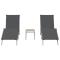 Chaises longues lot de 2 avec table gris clair résine tresséeDétendez-vous et profitez du plein air sur ces chaises longues confortables ! Matériau durable : la résine tressée, également connue sous le nom de poly rotin, est un matériau synthétique solide et nécessitant peu d'entretien qui ressemble au rotin naturel. Il est léger, facile à nettoyer et couramment utilisé pour les meubles d'extérieur en raison de sa durabilité et de ses propriétés de résistance aux intempéries. Dossier et repose-pied réglables : ce meuble d'extérieur est doté d'un dossier à 4 positions réglables et d'un repose-pieds à 3 positions réglables, ce qui vous permet de trouver facilement la position la plus confortable et la plus appropriée pour la détente. Expérience d'assise confortable : ce mobilier d'extérieur, doté d'un coussin épais rembourré, offre une expérience d'assise confortable. Housse amovible et lavable : ces coussins de siège sont dotés de housses amovibles pour un lavage et un entretien faciles. Cadre robuste et stable : le cadre en acier enduit de poudre assure la solidité et la stabilité du meuble de jardin pour une utilisation quotidienne à l'extérieur. Bon à savoir : Pour que vos meubles d'extérieur restent beaux, nous vous recommandons de les protéger avec une housse imperméable. Maximum 110 kg par siège. Soyez conscient du risque de feux ouverts et d'autres sources de forte chaleur à proximité du produit. ,