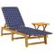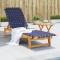 Chaises longues et table bleu foncé bois d'acacia solide tissuCette chaise longue classique est idéale pour prendre un bain de soleil et vous détendre près de la piscine, sur la terrasse ou dans le jardin. Bois d'acacia massif : le bois d'acacia massif est un matériau naturel magnifique. Le bois d'acacia est un bois dur tropical, dense, robuste et durable. Par conséquent, le cadre de la chaise longue en bois d'acacia à finition à l'huile est stable et facile à entretenir. Matériau durable : la fibre d'oléfine, également connue sous le nom de fibre de polypropylène (PP), est confortable, solide, durable et très résistante à la décoloration par la lumière du soleil. Dossier réglable : la chaise longue confortable dispose d'un dossier inclinable à 4 positions pour une relaxation optimale. Dessus de table robuste : le dessus à lattes de la table d'extérieur est conçu pour faciliter l'écoulement de l'eau et offre également un excellent support pour vos boissons, collations, paniers de fruits et décorations préférées. Conception de sangles : l'assise et le dossier de la chaise longue de jardin sont conçus avec des sangles pour plus de confort, d'élégance et de respirabilité. Bon à savoir : Pour que vos meubles d'extérieur restent beaux, nous vous recommandons de les protéger avec une housse imperméable. Maximum 110 kg par siège. ,