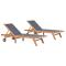 Détendez-vous sur ces chaises longues en teck massif ! Le lit de repos comporte un dossier réglable vous permettant de vous asseoir ou de vous allonger confortablement.