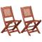 Chaises à manger pour enfants lot de 2 Bois d'eucalyptusCes chaises de salle à manger en bois solide, pour enfants, vont sûrement ajouter une touche naturelle à votre espace de vie extérieur ! Elles seront le point central de votre jardin, terrasse ou patio. Les chaises pliantes sont en bois d'eucalyptus solide, ce qui leur permet de résister aux intempéries et de rester durables. De plus, leur forme ergonomique donnera le confort optimal. De plus, la surface à finition à l'huile est facile à nettoyer avec un chiffon humide. Grâce à leur design pliable, les chaises d'extérieur sont faciles à stocker et à transporter. La livraison comprend 2 chaises pliantes de salle à manger. ATTENTION : veuillez faire attention à la petite taille de ce meuble. Il est conçu pour les enfants et non pour les adultes. Maximum 110 kg par siège.