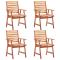Chaises à manger d'extérieur lot de 4 Acacia massifNotre ensemble de chaises de salle à manger contemporain ajoutera une touche de style naturel à votre jardin, terrasse ou patio. Cet ensemble de chaises en bois sera un excellent choix pour les repas en plein air. Ces chaises de salle à manger sont fabriquées en bois d'acacia de première qualité, un bois dur tropical, qui résiste aux intempéries et est durable pour des années d'utilisation. La surface huilée est facile à nettoyer avec un chiffon humide. Le design à lattes apportera un charme rustique. La livraison comprend 4 chaises de jardin. L'assemblage est facile. Maximum 110 kg par siège.