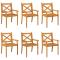 Chaises à manger d'extérieur lot de 6 Bois d'acacia massifCes chaises de salle à manger d'extérieur en bois sont sans aucun doute un excellent choix pour les repas en plein air dans votre jardin et sur votre terrasse. Bois d'acacia massif : le bois d'acacia massif est un matériau naturel magnifique. Le bois d'acacia un bois dur tropical, qui est dense, robuste et durable. Accoudoirs pratiques : les accoudoirs de ces chaises de salle à manger ajoutent plus de confort en position assise. Design élégant : ces chaises, avec un design en croix du dossier et un design à lattes du siège, sont conçues pour être au centre de votre espace. Remarque : Afin de prolonger la durée de vie de votre mobilier d'extérieur, nous vous recommandons de le protéger avec une housse imperméable. Chaque produit est livré avec un manuel de montage dans la boîte pour un montage facile. Maximum 110 kg par siège. ,