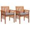 Chaises à manger de jardin et coussins lot de 2 acacia massifManger à l'extérieur devrait ressembler à un événement spécial, peu importe le genre d'occasions. Notre chaise de salle à manger est un choix optimal pour vous. Dotée d'une structure en bois d'acacia avec une finition résistante aux intempéries, cette chaise en bois d'acacia apporte un look classique à votre terrasse ou votre jardin tout en donnant à votre espace extérieur une sensation naturelle. Asseyez-vous littéralement et détendez-vous, conçu avec le siège profond et le coussin en mousse confortable, vous pouvez passer tous vos moments de détente à l'extérieur dans un confort supérieur. Le coussin résistant à l'eau permettra un nettoyage facile. La chaise est facile à assembler. La livraison comprend 2 chaises de salle à manger.