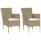 Chaises manger de jardin lot de 2 Résine tressée BeigeAjoutez une touche de style moderne avec cet ensemble de chaises en résine tressée tendance. Il est spécialement conçu pour compléter votre salle à manger extérieure ou tout simplement se démarquer tout seul. Cet ensemble de chaises est accrocheur dans n'importe quel décor. Son cadre en acier robuste, enveloppé de résine tressée tissée à la main, le fauteuil est résistant à la rouille et à la moisissure, offrant des années de détente de qualité. La chaise de jardin est conçue avec dossier incurvé et accoudoir, avec une forme ergonomique pour un maximum de confort. Le coussin de siège inclus offre un soutien supplémentaire lors de l'assise. Remarque : nous recommandons de couvrir la chaise sous la pluie, la neige et le gel pour une longue durée d'utilisation. Maximum 110 kg par siège. Soyez conscient du risque de feux ouverts et d'autres sources de forte chaleur à proximité du produit. ,