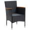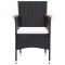 Chaises à manger de jardin lot de 4 Résine tressée NoirAjoutez une touche de style contemporain avec cet ensemble simpliste de chaises de jardin à votre extérieur, comme la piscine, le porche, le jardin, le balcon, etc. Robuste et durable : cadre en acier robuste enveloppé de résine tressée résistante aux intempéries, cet ensemble de chaises de jardin est résistant à la rouille et à la moisissure et offre des années de détente de qualité. Design ergonomique : cet ensemble de chaises d'extérieur, conçu avec un dossier et un accoudoir incurvés, présente une forme plus ergonomique pour un confort maximal. Accoudoirs en bois : les accoudoirs sont joliment décorés de bois d'acacia massif avec une finition à l'huile naturelle, ce qui apporte une sensation de charme rustique. Coussins confortables : de plus, les coussins bien rembourrés offrent un confort ultime pendant votre temps assis. Maximum 110 kg par siège. Soyez conscient du risque de feux ouverts et d'autres sources de forte chaleur à proximité du produit. ,