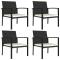 Chaises à manger de jardin lot de 4 Résine tressée NoirAjoutez une touche de style moderne à cet ensemble de chaises de salle à manger de jardin. Il est conçu pour compléter un ensemble de salle à manger d'extérieur ou se démarquer par lui-même. Cet ensemble de chaise attire l'attention dans n'importe quel cadre. Avec un cadre en acier robuste enveloppé de résine tressée résistante aux intempéries, les chaises de salle à manger sont stables, durables et adaptées à une utilisation dehors. Les coussins de siège inclus offrent également un confort d'assise supplémentaire. Grâce à la construction légère, les chaises d'extérieur sont faciles à déplacer. Maximum 110 kg par siège. Soyez conscient du risque de feux ouverts et d'autres sources de forte chaleur à proximité du produit. ,