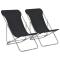 Chaises de plage pliables lot de 2 Acier et tissu oxford NoirNotre ensemble de chaises de plage est un excellent choix à emporter à la plage, au camping, dans le jardin, etc. Chaque chaise longue se compose d'un cadre en acier enduit de poudre de haute qualité et de tissu oxford 600D résistant à l'usure, ce qui la rend très résistante et durable. La chaise de jardin peut être inclinée sur 3 positions et est pliable pour un rangement facile et peu encombrant. La livraison comprend 2 chaises de plage pliables. Remarque : afin de prolonger la durée de vie de vos meubles d'extérieur, nous vous recommandons de les nettoyer régulièrement et de ne pas les laisser à l'extérieur sans protection inutilement. Nettoyage : utiliser une solution savonneuse douce Stockage : si possible, stockez dans un endroit frais et sec à l'intérieur. Si le produit est stocké à l'extérieur, protégez-le avec une housse imperméable. Essuyez et séchez l'excès d'eau ou de neige des surfaces planes après la pluie ou une chute de neige. Permettez une circulation d'air suffisante afin d'éviter les dommages liés à l'humidité. Maximum 110 kg par siège. ,