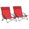 Chaises de plage pliables lot de 2 Rouge TissuProfitez de votre temps libre avec ces confortables chaises de plage pliables ! Les chaises d'extérieur sont fabriquées en tissu oxford, confortable, robuste et résistant aux intempéries. Grâce à leur cadre en acier fort, ces chaises de camping sont stables et robustes. Le dossier ajoute un soutien supplémentaire, vous permettant de vous asseoir et de vous détendre avec un confort optimal. Avec la conception pliable, les chaises légères peuvent être facilement repliées lorsqu'elles ne sont pas utilisées pour le transport et le stockage. Remarque : Afin de prolonger la durée de vie de vos meubles d'extérieur, nous vous recommandons de les nettoyer régulièrement et de ne pas les laisser à l'extérieur sans protection inutilement. Nettoyage : Utiliser une solution savonneuse douce Stockage : Si possible, stockez dans un endroit frais et sec à l'intérieur. Si le produit est stocké à l'extérieur, protégez-le avec une housse imperméable. Essuyez et séchez l'excès d'eau ou de neige des surfaces planes après la pluie ou une chute de neige. Permettez une circulation d'air suffisante afin d'éviter les dommages liés à l'humidité. Maximum 110 kg par siège. ,