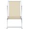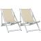 Chaises de plage pliantes lot de 2 crème aluminium et textilèneApportez ces chaises de plage pliantes à la plage, au bord de la piscine, sur la terrasse ou dans votre jardin pour profiter d'un moment de détente. Matériau durable : le tissu en textilène permet à l'air de circuler librement à travers lui tout en étant résistant aux rayons UV. Le textilène est donc idéal pour les temps chauds. En tant que matériau durable et solide, il est très résistant aux déchirures, aux perforations et aux moisissures.Réglable en 3 positions : la chaise longue confortable permet de passer librement d'une position à l'autre, répondant ainsi aux besoins de différents environnements.Cadre stable : le cadre en aluminium rend les sièges de jardin robustes et stables.Fonction pliable : la chaise de camping est pliable pour un rangement facile et peu encombrant, ce qui facilite également le transport. Bon à savoir :Pour que vos meubles d'extérieur restent beaux, nous vous recommandons de les protéger avec une housse imperméable. Maximum 110 kg par siège.