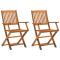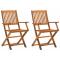 Chaises pliables d'extérieur lot de 2 Bois d'acacia solideNotre ensemble de chaises de salle à manger contemporain ajoutera une touche de style naturel à votre jardin, terrasse ou patio. Cet ensemble de chaises pliables sera un excellent choix pour les repas en plein air. Ces chaises de salle à manger sont construites en bois d'acacia de qualité supérieure, un bois tropical, qui est résistant aux intempéries et durable pour des années d'utilisation. La surface finie à l'huile est également facile à nettoyer avec un chiffon humide. Les chaises peuvent être pliées pour économiser de l'espace lorsqu'elles ne sont pas utilisées. Ces chaises sont faciles à assembler. Maximum 110 kg par siège.
