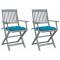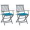 Chaises pliables d'extérieur lot de 2 et coussins Bois d'acaciaCet ensemble de chaises de salle à manger en bois contemporain avec coussins ajoute une touche de style naturel à votre jardin, terrasse ou patio. Cet ensemble de chaises pliables est un excellent choix pour les repas. Ces chaises de salle à manger sont faites de bois d'acacia massif, un bois dur tropical, les rendant résistantes aux intempéries et durables pour des années d'utilisation. Le bois d'acacia massif a la force de soutenir le poids et de résister à l'usure du temps. La surface grise délavée est facile à nettoyer avec un chiffon humide. Les chaises peuvent être repliées pour économiser de l'espace lorsqu'elles ne sont pas utilisées. De plus, les coussins inclus offrent un confort supplémentaire lors des moments de détente ou des repas. Chaque coussin comporte deux ensembles de cordes pour le fixer fermement à la chaise. Maximum 110 kg par siège.