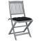 Chaises pliables d'extérieur lot de 2 et coussins Bois d'acaciaCet ensemble de chaises de salle à manger en bois contemporain avec coussins ajoute une touche de style naturel à votre jardin, terrasse ou patio. Cet ensemble de chaises pliables est un excellent choix pour les repas. Ces chaises de salle à manger sont faites de bois d'acacia massif, un bois dur tropical, les rendant résistantes aux intempéries et durables pour des années d'utilisation. Le bois d'acacia massif a la force de soutenir le poids et de résister à l'usure du temps. La surface grise délavée est facile à nettoyer avec un chiffon humide. Les chaises peuvent être repliées pour économiser de l'espace lorsqu'elles ne sont pas utilisées. De plus, les coussins inclus offrent un confort supplémentaire lors des moments de détente ou des repas. Chaque coussin comporte deux ensembles de cordes pour le fixer fermement à la chaise. Maximum 110 kg par siège.