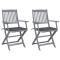 Chaises pliables d'extérieur lot de 2 et coussins Bois d'acaciaCet ensemble de chaises de salle à manger en bois contemporain avec coussins ajoute une touche de style naturel à votre jardin, terrasse ou patio. Cet ensemble de chaises pliables est un excellent choix pour les repas. Ces chaises de salle à manger sont faites de bois d'acacia massif, un bois dur tropical, les rendant résistantes aux intempéries et durables pour des années d'utilisation. Le bois d'acacia massif a la force de soutenir le poids et de résister à l'usure du temps. La surface grise délavée est facile à nettoyer avec un chiffon humide. Les chaises peuvent être repliées pour économiser de l'espace lorsqu'elles ne sont pas utilisées. De plus, les coussins inclus offrent un confort supplémentaire lors des moments de détente ou des repas. Chaque coussin comporte deux ensembles de cordes pour le fixer fermement à la chaise. Maximum 110 kg par siège. ,