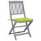 Chaises pliables d'extérieur lot de 2 et coussins Bois d'acaciaCet ensemble de chaises de salle à manger en bois contemporain avec coussins ajoute une touche de style naturel à votre jardin, terrasse ou patio. Cet ensemble de chaises pliables est un excellent choix pour les repas. Ces chaises de salle à manger sont faites de bois d'acacia massif, un bois dur tropical, les rendant résistantes aux intempéries et durables pour des années d'utilisation. Le bois d'acacia massif a la force de soutenir le poids et de résister à l'usure du temps. La surface grise délavée est facile à nettoyer avec un chiffon humide. Les chaises peuvent être repliées pour économiser de l'espace lorsqu'elles ne sont pas utilisées. De plus, les coussins inclus offrent un confort supplémentaire lors des moments de détente ou des repas. Chaque coussin comporte deux ensembles de cordes pour le fixer fermement à la chaise. Maximum 110 kg par siège.