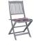 Chaises pliables d'extérieur lot de 2 et coussins Bois d'acaciaCet ensemble de chaises de salle à manger en bois contemporain avec coussins ajoute une touche de style naturel à votre jardin, terrasse ou patio. Cet ensemble de chaises pliables est un excellent choix pour les repas. Ces chaises de salle à manger sont faites de bois d'acacia massif, un bois dur tropical, les rendant résistantes aux intempéries et durables pour des années d'utilisation. Le bois d'acacia massif a la force de soutenir le poids et de résister à l'usure du temps. La surface grise délavée est facile à nettoyer avec un chiffon humide. Les chaises peuvent être repliées pour économiser de l'espace lorsqu'elles ne sont pas utilisées. De plus, les coussins inclus offrent un confort supplémentaire lors des moments de détente ou des repas. Chaque coussin comporte deux ensembles de cordes pour le fixer fermement à la chaise. Maximum 110 kg par siège.