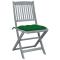 Chaises pliables d'extérieur lot de 4 et coussins Bois d'acaciaCet ensemble de chaises de salle à manger en bois contemporain avec coussins ajoute une touche de style naturel à votre jardin, terrasse ou patio. Cet ensemble de chaises pliables est un excellent choix pour les repas. Ces chaises de salle à manger sont faites de bois d'acacia massif, un bois dur tropical, les rendant résistantes aux intempéries et durables pour des années d'utilisation. Le bois d'acacia massif a la force de soutenir le poids et de résister à l'usure du temps. La surface grise délavée est facile à nettoyer avec un chiffon humide. Les chaises peuvent être repliées pour économiser de l'espace lorsqu'elles ne sont pas utilisées. De plus, les coussins inclus offrent un confort supplémentaire lors des moments de détente ou des repas. Chaque coussin comporte deux ensembles de cordes pour le fixer fermement à la chaise. Maximum 110 kg par siège.