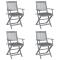 Chaises pliables d'extérieur lot de 4 et coussins Bois d'acaciaCet ensemble de chaises de salle à manger en bois contemporain avec coussins ajoute une touche de style naturel à votre jardin, terrasse ou patio. Cet ensemble de chaises pliables est un excellent choix pour les repas. Ces chaises de salle à manger sont faites de bois d'acacia massif, un bois dur tropical, les rendant résistantes aux intempéries et durables pour des années d'utilisation. Le bois d'acacia massif a la force de soutenir le poids et de résister à l'usure du temps. La surface grise délavée est facile à nettoyer avec un chiffon humide. Les chaises peuvent être repliées pour économiser de l'espace lorsqu'elles ne sont pas utilisées. De plus, les coussins inclus offrent un confort supplémentaire lors des moments de détente ou des repas. Chaque coussin comporte deux ensembles de cordes pour le fixer fermement à la chaise. Maximum 110 kg par siège.
