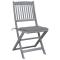 Chaises pliables d'extérieur lot de 4 et coussins Bois d'acaciaCet ensemble de chaises de salle à manger en bois contemporain avec coussins ajoute une touche de style naturel à votre jardin, terrasse ou patio. Cet ensemble de chaises pliables est un excellent choix pour les repas. Ces chaises de salle à manger sont faites de bois d'acacia massif, un bois dur tropical, les rendant résistantes aux intempéries et durables pour des années d'utilisation. Le bois d'acacia massif a la force de soutenir le poids et de résister à l'usure du temps. La surface grise délavée est facile à nettoyer avec un chiffon humide. Les chaises peuvent être repliées pour économiser de l'espace lorsqu'elles ne sont pas utilisées. De plus, les coussins inclus offrent un confort supplémentaire lors des moments de détente ou des repas. Chaque coussin comporte deux ensembles de cordes pour le fixer fermement à la chaise. Maximum 110 kg par siège. ,