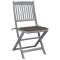 Chaises pliables d'extérieur lot de 4 et coussins Bois d'acaciaCet ensemble de chaises de salle à manger en bois contemporain avec coussins ajoute une touche de style naturel à votre jardin, terrasse ou patio. Cet ensemble de chaises pliables est un excellent choix pour les repas. Ces chaises de salle à manger sont faites de bois d'acacia massif, un bois dur tropical, les rendant résistantes aux intempéries et durables pour des années d'utilisation. Le bois d'acacia massif a la force de soutenir le poids et de résister à l'usure du temps. La surface grise délavée est facile à nettoyer avec un chiffon humide. Les chaises peuvent être repliées pour économiser de l'espace lorsqu'elles ne sont pas utilisées. De plus, les coussins inclus offrent un confort supplémentaire lors des moments de détente ou des repas. Chaque coussin comporte deux ensembles de cordes pour le fixer fermement à la chaise. Maximum 110 kg par siège. ,
