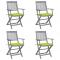 Chaises pliables d'extérieur lot de 4 et coussins Bois d'acaciaCet ensemble de chaises de salle à manger en bois contemporain avec coussins ajoute une touche de style naturel à votre jardin, terrasse ou patio. Cet ensemble de chaises pliables est un excellent choix pour les repas. Ces chaises de salle à manger sont faites de bois d'acacia massif, un bois dur tropical, les rendant résistantes aux intempéries et durables pour des années d'utilisation. Le bois d'acacia massif a la force de soutenir le poids et de résister à l'usure du temps. La surface grise délavée est facile à nettoyer avec un chiffon humide. Les chaises peuvent être repliées pour économiser de l'espace lorsqu'elles ne sont pas utilisées. De plus, les coussins inclus offrent un confort supplémentaire lors des moments de détente ou des repas. Chaque coussin comporte deux ensembles de cordes pour le fixer fermement à la chaise. Maximum 110 kg par siège.