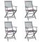 Chaises pliables d'extérieur lot de 4 et coussins Bois d'acaciaCet ensemble de chaises de salle à manger en bois contemporain avec coussins ajoute une touche de style naturel à votre jardin, terrasse ou patio. Cet ensemble de chaises pliables est un excellent choix pour les repas. Ces chaises de salle à manger sont faites de bois d'acacia massif, un bois dur tropical, les rendant résistantes aux intempéries et durables pour des années d'utilisation. Le bois d'acacia massif a la force de soutenir le poids et de résister à l'usure du temps. La surface grise délavée est facile à nettoyer avec un chiffon humide. Les chaises peuvent être repliées pour économiser de l'espace lorsqu'elles ne sont pas utilisées. De plus, les coussins inclus offrent un confort supplémentaire lors des moments de détente ou des repas. Chaque coussin comporte deux ensembles de cordes pour le fixer fermement à la chaise. Maximum 110 kg par siège.