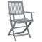Chaises pliables d'extérieur lot de 4 et coussins Bois d'acaciaCet ensemble de chaises de salle à manger en bois contemporain avec coussins ajoute une touche de style naturel à votre jardin, terrasse ou patio. Cet ensemble de chaises pliables est un excellent choix pour les repas. Ces chaises de salle à manger sont faites de bois d'acacia massif, un bois dur tropical, les rendant résistantes aux intempéries et durables pour des années d'utilisation. Le bois d'acacia massif a la force de soutenir le poids et de résister à l'usure du temps. La surface grise délavée est facile à nettoyer avec un chiffon humide. Les chaises peuvent être repliées pour économiser de l'espace lorsqu'elles ne sont pas utilisées. De plus, les coussins inclus offrent un confort supplémentaire lors des moments de détente ou des repas. Chaque coussin comporte deux ensembles de cordes pour le fixer fermement à la chaise. Maximum 110 kg par siège.