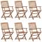 Chaises pliables d'extérieur lot de 6 Bois d'acacia solideCet ensemble de chaises pliables contemporaines ajoutera une touche de style naturel à votre jardin, terrasse ou patio. Cet ensemble de chaises d'extérieur sera un excellent choix pour les repas. Ces chaises de salle à manger sont construites en bois d'acacia solide, un bois tropical, qui est résistant aux intempéries et durable pour des années d'utilisation. La surface finie à l'huile est également facile à nettoyer avec un chiffon humide. Les chaises peuvent être pliées pour économiser de l'espace lorsqu'elles ne sont pas utilisées. Remarque : Afin de prolonger la durée de vie de vos meubles d'extérieur, nous vous recommandons de les nettoyer régulièrement et de ne pas les laisser à l'extérieur sans protection inutilement. Nettoyage : Utiliser une solution savonneuse douce Stockage : Si possible, stockez dans un endroit frais et sec à l'intérieur. Si le produit est stocké à l'extérieur, protégez-le avec une housse imperméable. Essuyez et séchez l'excès d'eau ou de neige des surfaces planes après la pluie ou une chute de neige. Permettez une circulation d'air suffisante afin d'éviter les dommages liés à l'humidité. Maximum 110 kg par siège. ,