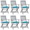 Chaises pliables d'extérieur lot de 6 et coussins Bois d'acaciaCet ensemble de chaises de salle à manger en bois contemporain avec coussins ajoute une touche de style naturel à votre jardin, terrasse ou patio. Cet ensemble de chaises pliables est un excellent choix pour les repas. Ces chaises de salle à manger sont faites de bois d'acacia massif, un bois dur tropical, les rendant résistantes aux intempéries et durables pour des années d'utilisation. Le bois d'acacia massif a la force de soutenir le poids et de résister à l'usure du temps. La surface grise délavée est facile à nettoyer avec un chiffon humide. Les chaises peuvent être repliées pour économiser de l'espace lorsqu'elles ne sont pas utilisées. De plus, les coussins inclus offrent un confort supplémentaire lors des moments de détente ou des repas. Chaque coussin comporte deux ensembles de cordes pour le fixer fermement à la chaise. Maximum 110 kg par siège.