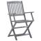 Chaises pliables d'extérieur lot de 6 et coussins Bois d'acaciaCet ensemble de chaises de salle à manger en bois contemporain avec coussins ajoute une touche de style naturel à votre jardin, terrasse ou patio. Cet ensemble de chaises pliables est un excellent choix pour les repas. Ces chaises de salle à manger sont faites de bois d'acacia massif, un bois dur tropical, les rendant résistantes aux intempéries et durables pour des années d'utilisation. Le bois d'acacia massif a la force de soutenir le poids et de résister à l'usure du temps. La surface grise délavée est facile à nettoyer avec un chiffon humide. Les chaises peuvent être repliées pour économiser de l'espace lorsqu'elles ne sont pas utilisées. De plus, les coussins inclus offrent un confort supplémentaire lors des moments de détente ou des repas. Chaque coussin comporte deux ensembles de cordes pour le fixer fermement à la chaise. Maximum 110 kg par siège. ,