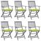 Chaises pliables d'extérieur lot de 6 et coussins Bois d'acaciaCet ensemble de chaises de salle à manger en bois contemporain avec coussins ajoute une touche de style naturel à votre jardin, terrasse ou patio. Cet ensemble de chaises pliables est un excellent choix pour les repas. Ces chaises de salle à manger sont faites de bois d'acacia massif, un bois dur tropical, les rendant résistantes aux intempéries et durables pour des années d'utilisation. Le bois d'acacia massif a la force de soutenir le poids et de résister à l'usure du temps. La surface grise délavée est facile à nettoyer avec un chiffon humide. Les chaises peuvent être repliées pour économiser de l'espace lorsqu'elles ne sont pas utilisées. De plus, les coussins inclus offrent un confort supplémentaire lors des moments de détente ou des repas. Chaque coussin comporte deux ensembles de cordes pour le fixer fermement à la chaise. Maximum 110 kg par siège.