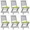 Chaises pliables d'extérieur lot de 6 et coussins Bois d'acaciaCet ensemble de chaises de salle à manger en bois contemporain avec coussins ajoute une touche de style naturel à votre jardin, terrasse ou patio. Cet ensemble de chaises pliables est un excellent choix pour les repas. Ces chaises de salle à manger sont faites de bois d'acacia massif, un bois dur tropical, les rendant résistantes aux intempéries et durables pour des années d'utilisation. Le bois d'acacia massif a la force de soutenir le poids et de résister à l'usure du temps. La surface grise délavée est facile à nettoyer avec un chiffon humide. Les chaises peuvent être repliées pour économiser de l'espace lorsqu'elles ne sont pas utilisées. De plus, les coussins inclus offrent un confort supplémentaire lors des moments de détente ou des repas. Chaque coussin comporte deux ensembles de cordes pour le fixer fermement à la chaise. Maximum 110 kg par siège.