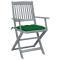 Chaises pliables d'extérieur lot de 6 et coussins Bois d'acaciaCet ensemble de chaises de salle à manger en bois contemporain avec coussins ajoute une touche de style naturel à votre jardin, terrasse ou patio. Cet ensemble de chaises pliables est un excellent choix pour les repas. Ces chaises de salle à manger sont faites de bois d'acacia massif, un bois dur tropical, les rendant résistantes aux intempéries et durables pour des années d'utilisation. Le bois d'acacia massif a la force de soutenir le poids et de résister à l'usure du temps. La surface grise délavée est facile à nettoyer avec un chiffon humide. Les chaises peuvent être repliées pour économiser de l'espace lorsqu'elles ne sont pas utilisées. De plus, les coussins inclus offrent un confort supplémentaire lors des moments de détente ou des repas. Chaque coussin comporte deux ensembles de cordes pour le fixer fermement à la chaise. Maximum 110 kg par siège. ,