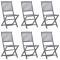 Chaises pliables d'extérieur lot de 6 et coussins Bois d'acaciaCet ensemble de chaises de salle à manger en bois contemporain avec coussins ajoute une touche de style naturel à votre jardin, terrasse ou patio. Cet ensemble de chaises pliables est un excellent choix pour les repas. Ces chaises de salle à manger sont faites de bois d'acacia massif, un bois dur tropical, les rendant résistantes aux intempéries et durables pour des années d'utilisation. Le bois d'acacia massif a la force de soutenir le poids et de résister à l'usure du temps. La surface grise délavée est facile à nettoyer avec un chiffon humide. Les chaises peuvent être repliées pour économiser de l'espace lorsqu'elles ne sont pas utilisées. De plus, les coussins inclus offrent un confort supplémentaire lors des moments de détente ou des repas. Chaque coussin comporte deux ensembles de cordes pour le fixer fermement à la chaise. Maximum 110 kg par siège.