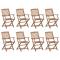 Chaises pliables d'extérieur lot de 8 Bois d'acacia solideCet ensemble de chaises de salle à manger contemporain en bois ajoutera une touche de style naturel à votre jardin, terrasse ou patio. Cet ensemble de chaises pliables sera un excellent choix pour les repas. Ces chaises de salle à manger sont construites en bois d'acacia de qualité supérieure, un bois tropical, qui est résistant aux intempéries et durable pour des années d'utilisation. La surface finie à l'huile est également facile à nettoyer avec un chiffon humide. Les chaises peuvent être pliées pour économiser de l'espace lorsqu'elles ne sont pas utilisées. Remarque : afin de prolonger la durée de vie de vos meubles d'extérieur, nous vous recommandons de les nettoyer régulièrement et de ne pas les laisser à l'extérieur sans protection inutilement. Nettoyage : utiliser une solution savonneuse douce Stockage : si possible, stockez dans un endroit frais et sec à l'intérieur. Si le produit est stocké à l'extérieur, protégez-le avec une housse imperméable. Essuyez et séchez l'excès d'eau ou de neige des surfaces planes après la pluie ou une chute de neige. Permettez une circulation d'air suffisante afin d'éviter les dommages liés à l'humidité. Maximum 110 kg par siège. ,