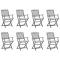 Chaises pliables d'extérieur lot de 8 et coussins Bois d'acaciaCet ensemble de chaises de salle à manger en bois contemporain avec coussins ajoute une touche de style naturel à votre jardin, terrasse ou patio. Cet ensemble de chaises pliables est un excellent choix pour les repas. Ces chaises de salle à manger sont faites de bois d'acacia massif, un bois dur tropical, les rendant résistantes aux intempéries et durables pour des années d'utilisation. Le bois d'acacia massif a la force de soutenir le poids et de résister à l'usure du temps. La surface grise délavée est facile à nettoyer avec un chiffon humide. Les chaises peuvent être repliées pour économiser de l'espace lorsqu'elles ne sont pas utilisées. De plus, les coussins inclus offrent un confort supplémentaire lors des moments de détente ou des repas. Chaque coussin comporte deux ensembles de cordes pour le fixer fermement à la chaise. Remarque : Afin de prolonger la durée de vie de vos meubles d'extérieur, nous vous recommandons de les nettoyer régulièrement et de ne pas les laisser à l'extérieur sans protection inutilement.Nettoyage : Utiliser une solution savonneuse douceStockage : Si possible, stockez dans un endroit frais et sec à l'intérieur. Si le produit est stocké à l'extérieur, protégez-le avec une housse imperméable. Essuyez et séchez l'excès d'eau ou de neige des surfaces planes après la pluie ou une chute de neige. Permettez une circulation d'air suffisante afin d'éviter les dommages liés à l'humidité. Maximum 110 kg par siège.