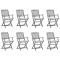 Chaises pliables d'extérieur lot de 8 et coussins Bois d'acaciaCet ensemble de chaises de salle à manger en bois contemporain avec coussins ajoute une touche de style naturel à votre jardin, terrasse ou patio. Cet ensemble de chaises pliables est un excellent choix pour les repas. Ces chaises de salle à manger sont faites de bois d'acacia massif, un bois dur tropical, les rendant résistantes aux intempéries et durables pour des années d'utilisation. Le bois d'acacia massif a la force de soutenir le poids et de résister à l'usure du temps. La surface grise délavée est facile à nettoyer avec un chiffon humide. Les chaises peuvent être repliées pour économiser de l'espace lorsqu'elles ne sont pas utilisées. De plus, les coussins inclus offrent un confort supplémentaire lors des moments de détente ou des repas. Chaque coussin comporte deux ensembles de cordes pour le fixer fermement à la chaise. Remarque : Afin de prolonger la durée de vie de vos meubles d'extérieur, nous vous recommandons de les nettoyer régulièrement et de ne pas les laisser à l'extérieur sans protection inutilement. Nettoyage : Utiliser une solution savonneuse douce Stockage : Si possible, stockez dans un endroit frais et sec à l'intérieur. Si le produit est stocké à l'extérieur, protégez-le avec une housse imperméable. Essuyez et séchez l'excès d'eau ou de neige des surfaces planes après la pluie ou une chute de neige. Permettez une circulation d'air suffisante afin d'éviter les dommages liés à l'humidité. Maximum 110 kg par siège. ,