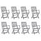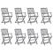 Chaises pliables d'extérieur lot de 8 et coussins Bois d'acaciaCet ensemble de chaises de salle à manger en bois contemporain avec coussins ajoute une touche de style naturel à votre jardin, terrasse ou patio. Cet ensemble de chaises pliables est un excellent choix pour les repas. Ces chaises de salle à manger sont faites de bois d'acacia massif, un bois dur tropical, les rendant résistantes aux intempéries et durables pour des années d'utilisation. Le bois d'acacia massif a la force de soutenir le poids et de résister à l'usure du temps. La surface grise délavée est facile à nettoyer avec un chiffon humide. Les chaises peuvent être repliées pour économiser de l'espace lorsqu'elles ne sont pas utilisées. De plus, les coussins inclus offrent un confort supplémentaire lors des moments de détente ou des repas. Chaque coussin comporte deux ensembles de cordes pour le fixer fermement à la chaise. Remarque : Afin de prolonger la durée de vie de vos meubles d'extérieur, nous vous recommandons de les nettoyer régulièrement et de ne pas les laisser à l'extérieur sans protection inutilement. Nettoyage : Utiliser une solution savonneuse douce Stockage : Si possible, stockez dans un endroit frais et sec à l'intérieur. Si le produit est stocké à l'extérieur, protégez-le avec une housse imperméable. Essuyez et séchez l'excès d'eau ou de neige des surfaces planes après la pluie ou une chute de neige. Permettez une circulation d'air suffisante afin d'éviter les dommages liés à l'humidité. Maximum 110 kg par siège. ,
