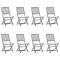 Chaises pliables d'extérieur lot de 8 et coussins Bois d'acaciaCet ensemble de chaises de salle à manger en bois contemporain avec coussins ajoute une touche de style naturel à votre jardin, terrasse ou patio. Cet ensemble de chaises pliables est un excellent choix pour les repas. Ces chaises de salle à manger sont faites de bois d'acacia massif, un bois dur tropical, les rendant résistantes aux intempéries et durables pour des années d'utilisation. Le bois d'acacia massif a la force de soutenir le poids et de résister à l'usure du temps. La surface grise délavée est facile à nettoyer avec un chiffon humide. Les chaises peuvent être repliées pour économiser de l'espace lorsqu'elles ne sont pas utilisées. De plus, les coussins inclus offrent un confort supplémentaire lors des moments de détente ou des repas. Chaque coussin comporte deux ensembles de cordes pour le fixer fermement à la chaise. Remarque : Afin de prolonger la durée de vie de vos meubles d'extérieur, nous vous recommandons de les nettoyer régulièrement et de ne pas les laisser à l'extérieur sans protection inutilement. Nettoyage : Utiliser une solution savonneuse douce Stockage : Si possible, stockez dans un endroit frais et sec à l'intérieur. Si le produit est stocké à l'extérieur, protégez-le avec une housse imperméable. Essuyez et séchez l'excès d'eau ou de neige des surfaces planes après la pluie ou une chute de neige. Permettez une circulation d'air suffisante afin d'éviter les dommages liés à l'humidité. Maximum 110 kg par siège. ,