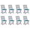 Chaises pliables d'extérieur lot de 8 et coussins Bois d'acaciaCet ensemble de chaises de salle à manger en bois contemporain avec coussins ajoute une touche de style naturel à votre jardin, terrasse ou patio. Cet ensemble de chaises pliables est un excellent choix pour les repas. Ces chaises de salle à manger sont faites de bois d'acacia massif, un bois dur tropical, les rendant résistantes aux intempéries et durables pour des années d'utilisation. Le bois d'acacia massif a la force de soutenir le poids et de résister à l'usure du temps. La surface grise délavée est facile à nettoyer avec un chiffon humide. Les chaises peuvent être repliées pour économiser de l'espace lorsqu'elles ne sont pas utilisées. De plus, les coussins inclus offrent un confort supplémentaire lors des moments de détente ou des repas. Chaque coussin comporte deux ensembles de cordes pour le fixer fermement à la chaise. Remarque : Afin de prolonger la durée de vie de vos meubles d'extérieur, nous vous recommandons de les nettoyer régulièrement et de ne pas les laisser à l'extérieur sans protection inutilement. Nettoyage : Utiliser une solution savonneuse douce Stockage : Si possible, stockez dans un endroit frais et sec à l'intérieur. Si le produit est stocké à l'extérieur, protégez-le avec une housse imperméable. Essuyez et séchez l'excès d'eau ou de neige des surfaces planes après la pluie ou une chute de neige. Permettez une circulation d'air suffisante afin d'éviter les dommages liés à l'humidité. Maximum 110 kg par siège.